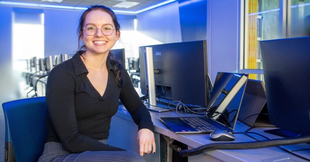 Trish Tackett, who is halfway through her BAS Cybersecurity degree and already employed as an engineering technician at L3Harris, looks forward to putting her classroom experience into an internship.