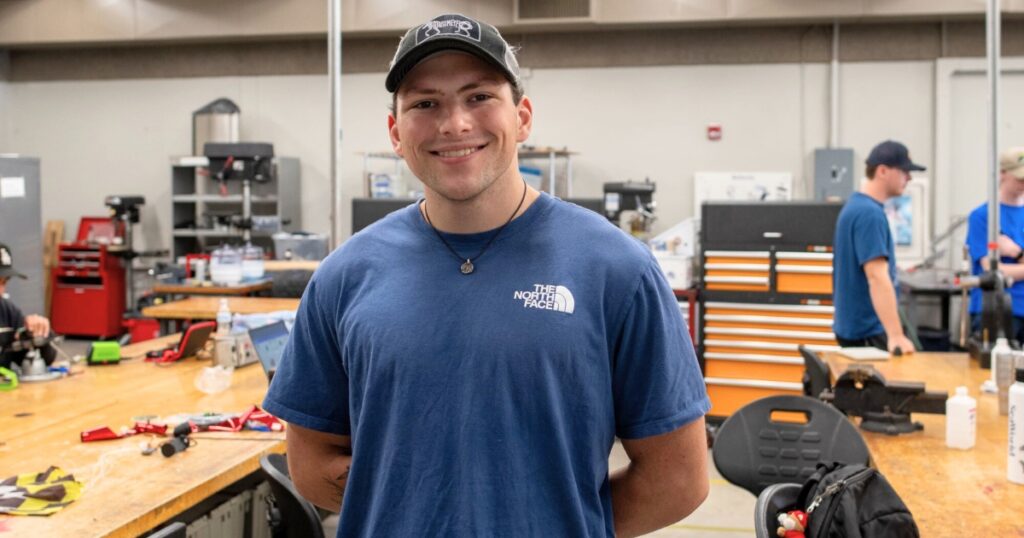 Sydney Shell, a fourth-semester student, came to the program after seeing her sister succeed in aerospace. She had no aerospace background, just a love for hands-on projects, honed from years of helping her dad with car repairs and renovations. Now, she’s preparing to graduate and has already secured an internship with Blue Origin.